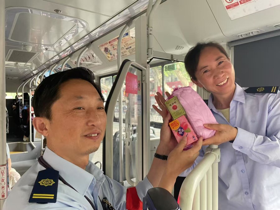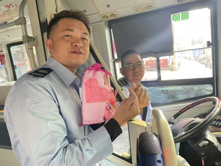5月20日當天,清晨的陽光剛剛灑下,全體管理人員便早早來到線路站臺。他們手中提著裝滿愛心的“清涼守護袋”,臉上洋溢著溫暖的笑容,等待著駕駛員們的到來。當一輛輛公交車緩緩駛入站臺,駕駛員們看到管理人員手中的“清涼守護袋”時,眼中滿是驚喜與感動。管理人員們親手將“清涼守護袋”遞到駕駛員手中,同時送上最誠摯的問候:“師傅,您辛苦了!祝您平安、幸福、喜悅!”簡單的話語,卻如同一股暖流,流淌在每一位駕駛員心間。