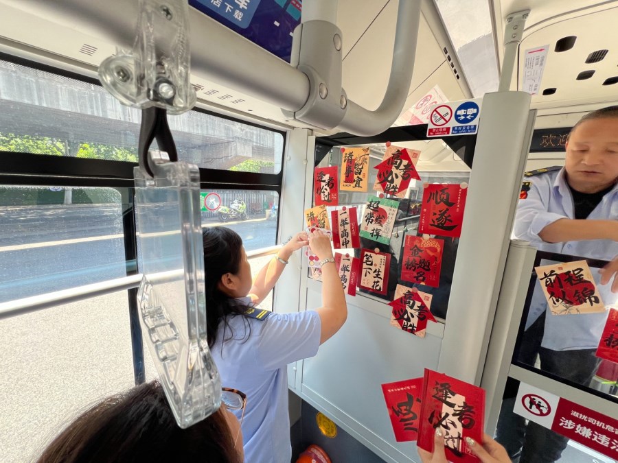 166路公交車,成為了這份溫暖與鼓勵的流動載體。車隊(duì)長史凌雯精心策劃,攜車隊(duì)工作人員早早行動起來。他們在車廂內(nèi)掛滿了寓意美好的掛件,五彩斑斕的顏色仿佛在訴說著對學(xué)子們的祝福。每一個掛件都承載著深深的期許,希望能給學(xué)生們帶來好運(yùn)與勇氣。