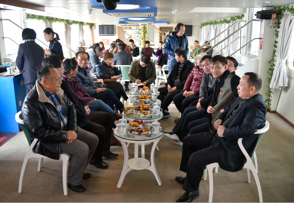 公司紀委書記、工會主席張勇為歡送會致辭。張書記代表全體員工向光榮退休的職工表示感謝,并對他們多年如一日在公司“安全、服務、穩(wěn)定”工作中,兢兢業(yè)業(yè)、任勞任怨、無私付出表示深深的敬意,同時希望他們退休不退志,離崗不離心,?;丶铱纯础V猩?8號緩緩駛離碼頭,舒緩溫馨的音樂聲響起,記憶的相冊慢慢打開,一張張泛黃的照片掀開塵封多年的往事?;貞浧鹜使部?、攜手戰(zhàn)斗的日子,退休職工們撫今追昔,感慨萬千,紛紛訴說對企業(yè)的眷戀之情,感恩著公司一路以來的關心與培養(yǎng),祝愿公司蓬勃發(fā)展,蒸蒸日上。隨后,來自各部室、基層單位的領導及職工代表們也為退休職工們送上最真摯的祝福,祝福他們在未來的日子里,身體健康、家庭幸福、生活愉快。