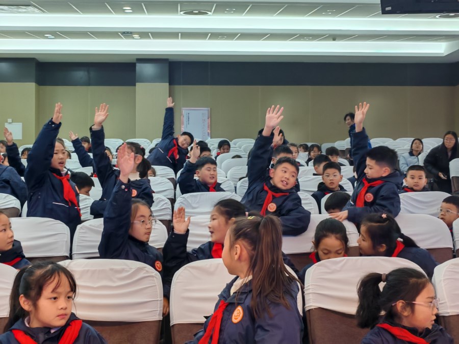 “乘坐公交車時應(yīng)該注意哪些問題?公交車上的安全設(shè)備有哪些?哪些東西不能帶上公交?”趙艷玲與同學(xué)們開展互動問答,同學(xué)們積極參與,現(xiàn)場氛圍熱情。