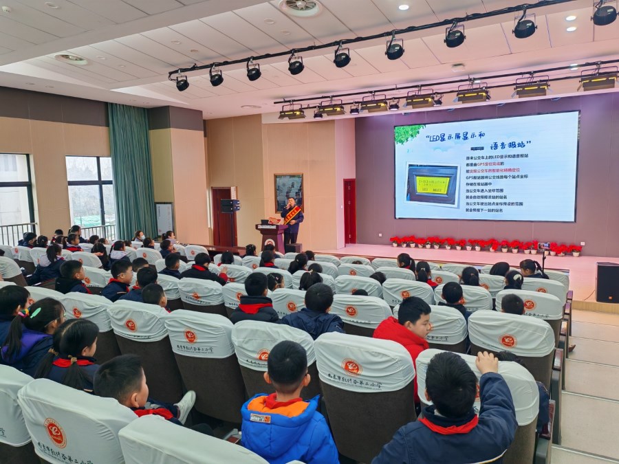 活動下半場,勞模王志偉結(jié)合自己豐富閱歷為大家?guī)砹艘惶锰貏e的公交安全知識講座,“公交車的由來是什么?為何報站如此精準(zhǔn),有專門報站按鈕嗎?為什么公交車是方方正正的,卻在公交車尾有一塊上翹?”王志偉用樸實的語言和生動的事例,帶領(lǐng)同學(xué)們追溯城市公交的起源與演變歷程,科普公交車上的“高科技”,如 LED 屏顯示和語音報站,這是由 GPS 定位實現(xiàn)的智能化功能,通過存儲站點坐標(biāo),讓公交車精準(zhǔn)報站。課堂上還詳細講述了如何安全文明乘車。候車時,要在指定站點等待,遠離機動車道,提前準(zhǔn)備好零錢或公交卡;上車時,應(yīng)有序排隊,上車后迅速坐好或站穩(wěn)扶好;乘車過程中,不能隨意走動、打鬧,要保管好財物,遇到緊急情況聽從司機指揮。講座最后,王志偉和同學(xué)們一起合唱《學(xué)習(xí)雷鋒好榜樣》,高亢的歌聲表達著孩子們最淳樸的感情和爭做新時代雷鋒傳人的決心。