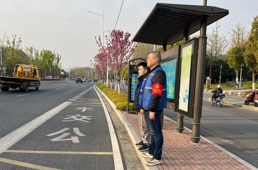 為了確保市民祭掃出行的安全,汽車六隊(duì)每天安排安全崗在重要站點(diǎn)維持現(xiàn)場(chǎng)秩序。安全崗工作人員每天 6 點(diǎn) 50 分準(zhǔn)時(shí)到崗,身穿醒目的藍(lán)馬甲,成為了公交站點(diǎn)一道亮麗的風(fēng)景線。他們堅(jiān)守崗位,引導(dǎo)乘客有序乘車,提醒乘客注意安全事項(xiàng),耐心解答乘客的疑問,為市民提供了貼心的服務(wù)。