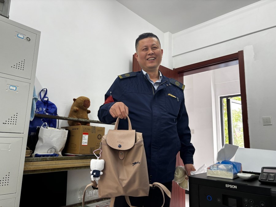 大約半小時(shí)后,龍福站點(diǎn)急匆匆的來了位外地女士,非常焦急,懷著忐忑的心情來到公交調(diào)度站,進(jìn)門就問“有沒有師傅撿到一個(gè)女士隨身包”,值班人員正好看到拾到白色運(yùn)動(dòng)包的湯師傅也在,連忙介紹了一下湯師傅上繳失物的經(jīng)過,在核實(shí)身份信息后把包遞給她:“你好,看看東西都在不?”李女士激動(dòng)得眼眶都紅了,她連忙打開包檢查,看到自己的寶貝們都在,懸著的心終于落了地。她緊緊握著湯雄平師傅的手,聲音有些顫抖地說:“師傅,太感謝您了!這些東西對(duì)我真的太重要了!我是內(nèi)蒙來南京游玩的,要是身份證等證件丟了,那可是非常麻煩,感謝南京公交師傅,拾金不昧”湯師傅微笑著說:“沒事,丟了東西心里肯定不好受,以后可得多注意。”