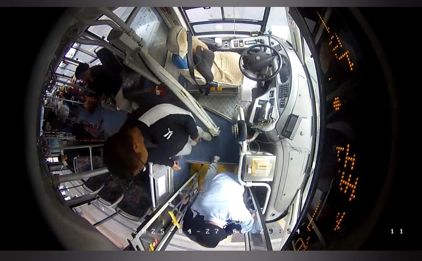 當(dāng)日9時30分, 87路駕駛員騰強(qiáng)駕駛車輛行駛至市第一醫(yī)院站時,當(dāng)時車站乘客較多,有序的上車的同時,眼尖的騰強(qiáng)發(fā)現(xiàn)走在最后方的一名中年人拄著拐杖,正準(zhǔn)備上車,由于拄著拐杖,上車非常困難。騰強(qiáng)立即拉好手剎,起身幫助這位乘客扶他上車,因為這名乘客腿腳不便,所以扶起來也非常的吃力,安頓好乘客后,騰強(qiáng)繼續(xù)上線運營。10時24分,車輛行駛到萬福路站,騰強(qiáng)通過后視鏡發(fā)現(xiàn)先前幫助過的乘客需要下車。再次來到后門攙扶著這位乘客下車,下車后該乘客對騰強(qiáng)表達(dá)了感謝之情。
