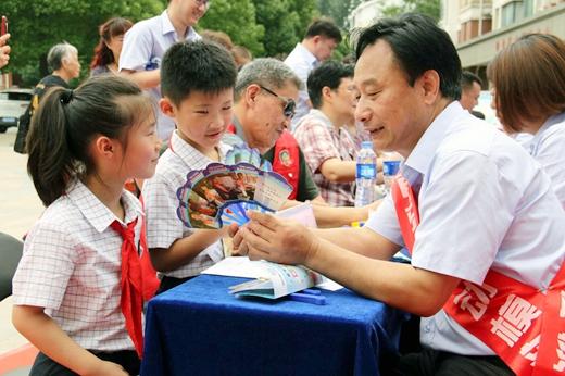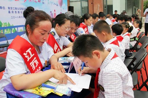 江蘇省勞動模范、江南公交34路駕駛員章玉蘭現(xiàn)場發(fā)出倡議,南京市勞動模范、江南公交3路駕駛員管金玲與少先隊員一起,倡議遵守南京文明規(guī)范《八個不》。
