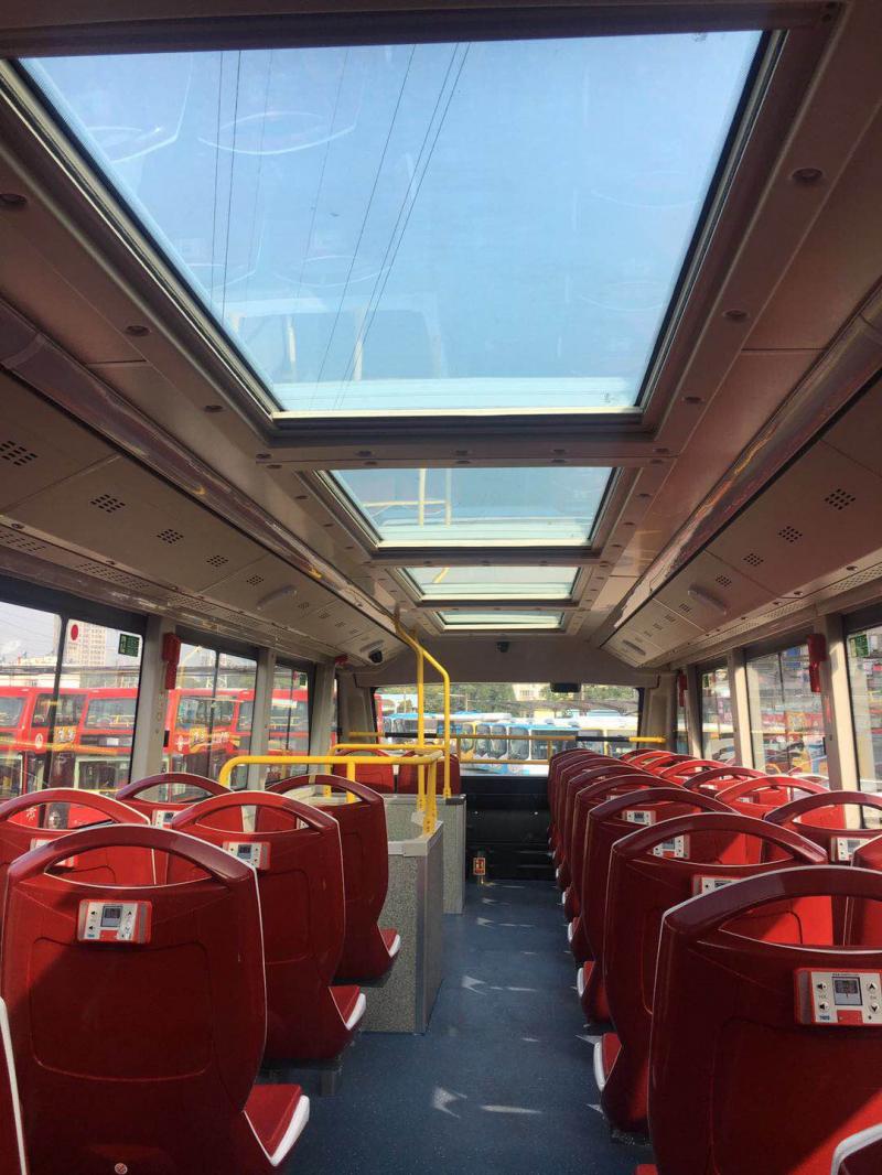 >>> 回歸后更加“高大上” 本次回歸的“雙層觀光巴士”是南京公交集團(tuán)與春秋集團(tuán)聯(lián)合推出的2條旅游觀光專線,車型十分“高大上”,是純電動驅(qū)動的雙層觀光巴士,由南京雙誠觀光巴士有限公司運(yùn)營。線路所有車輛均為紅色雙層巴士車身配靚麗的南京古城圖案,二層設(shè)全景玻璃天窗,讓游客能全方位、無死角地欣賞車外的景色。據(jù)了解,南京運(yùn)行的雙層觀光巴士采用“零排放”設(shè)計(jì),為了安全嚴(yán)格限制行駛速度,在上層還禁止行駛時站立。南京也是繼上海、廣州,第三個在國內(nèi)開通雙層觀光巴士的城市。